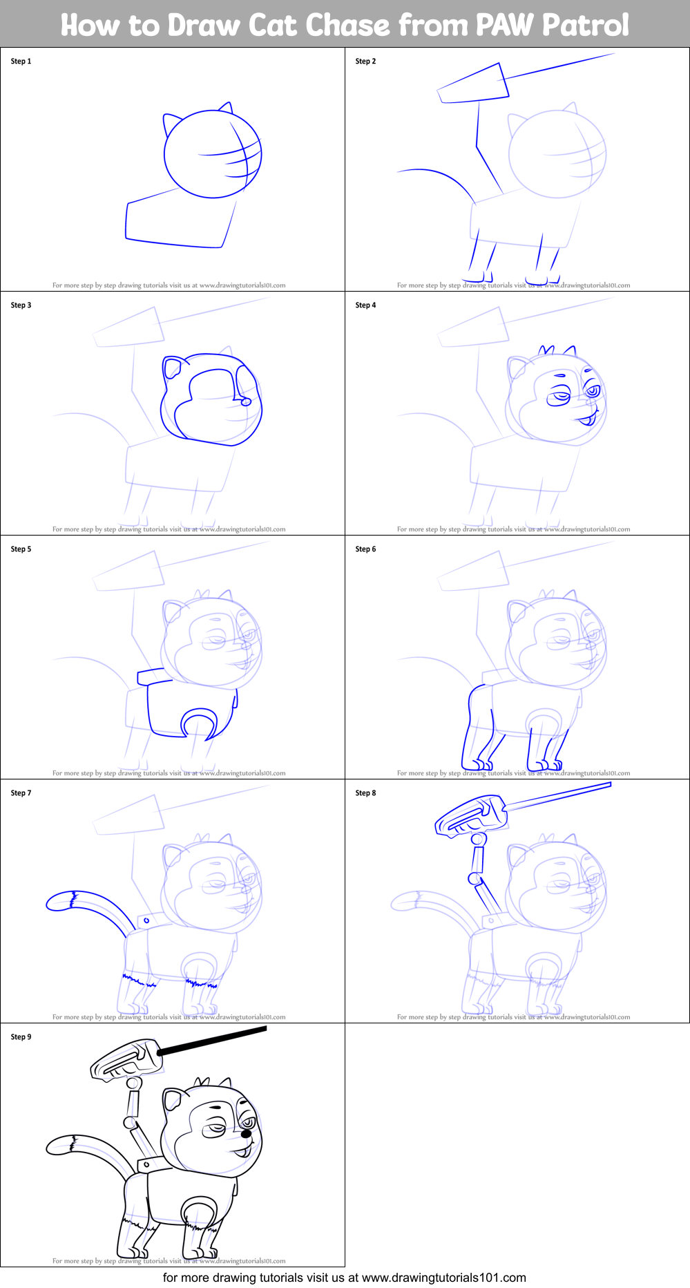 How to Draw Cat Chase from PAW Patrol printable step by ... - step by step cartoon step by step cat drawing easy
